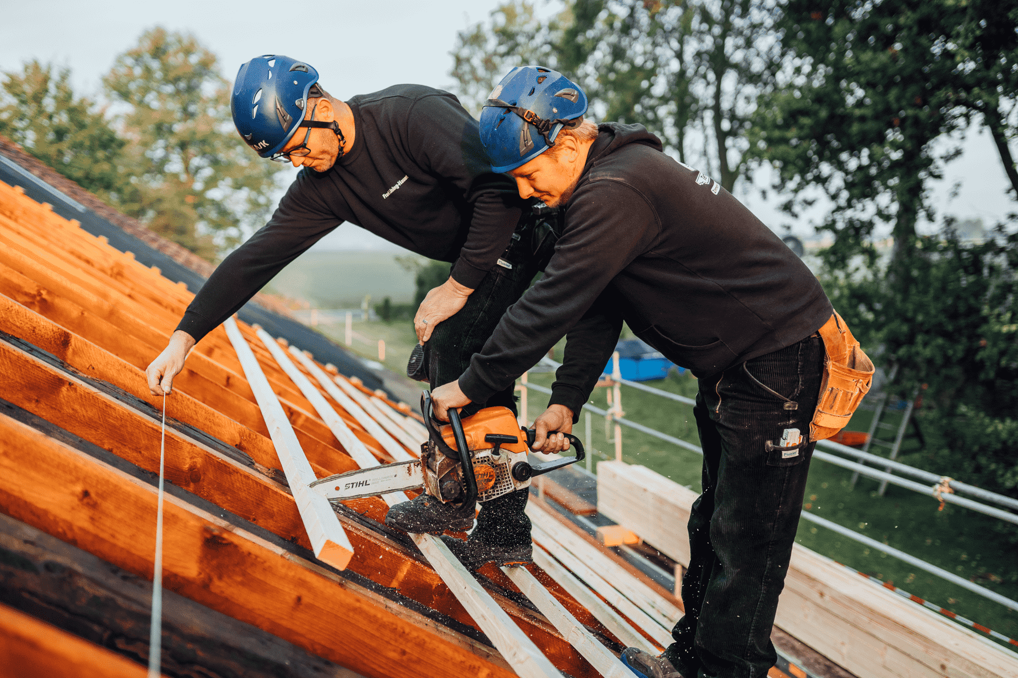 Durch über 30 Jahre Erfahrung im Holzbau-, Zimmerer- und Dachdeckerbereich sind wir Ihr zuverlässiger und professioneller Partner. Dank unserer eigenen Abbundanlage, sind wir sowohl autonom als auch flexibel. Daher können wir direkt präzise und zeitnah zuschneiden. Die Kunst ein Dach herzustellen ist keine, die man mal so nebenbei erlernt. Das Dach erfordert Know-How sowie handwerkliches Geschick. Der richtige Dachstuhl entscheidet über den zukünftigen Energieverbrauch und den verfügbaren Raum. Geht es um Ihr Dach, sollten Sie deshalb auf einen professionellen Zimmereifachbetrieb zurückgreifen. Von der Erstellung des Dachstuhles bis hin zur passenden Eindeckung bieten wir Ihnen hochwertige Arbeiten und individuelle Lösungen bei der Gestaltung Ihres Daches an.